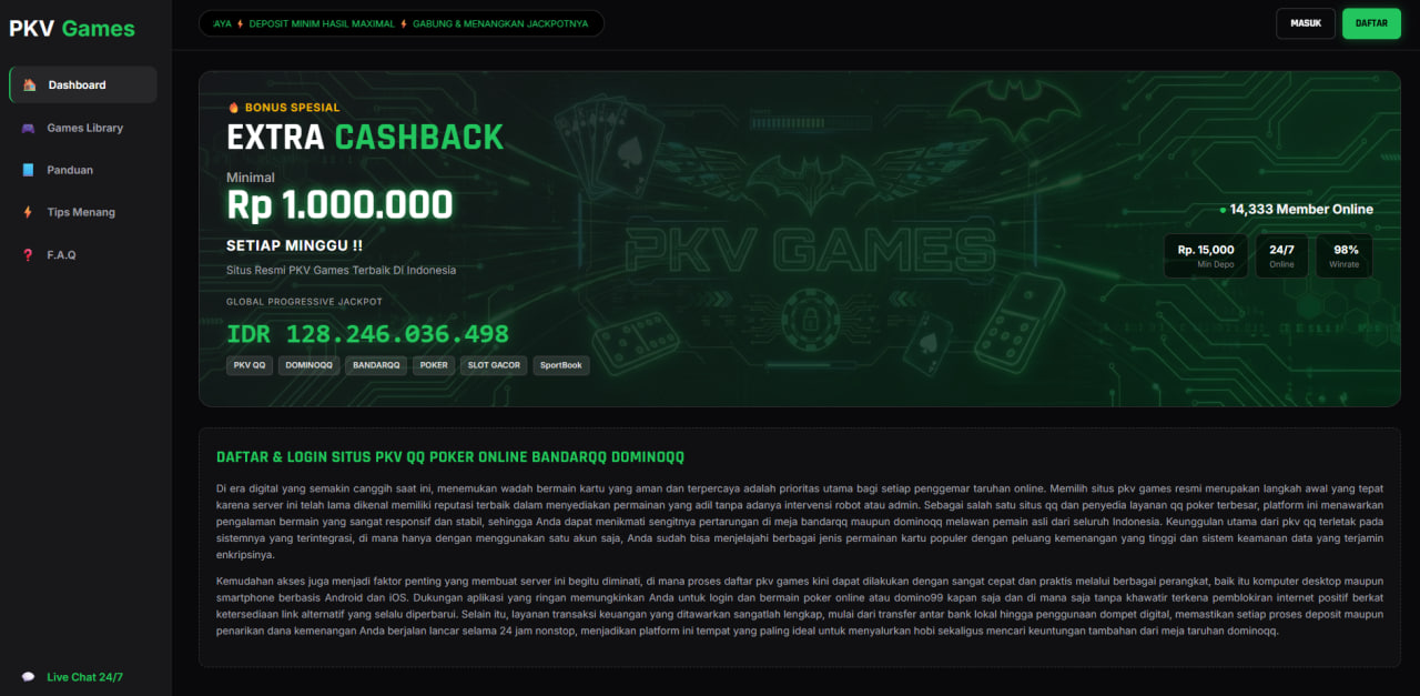 Di era digital yang semakin canggih saat ini, menemukan wadah bermain kartu yang aman dan terpercaya adalah prioritas utama bagi setiap penggemar taruhan online. Memilih situs pkv games resmi merupakan langkah awal yang tepat karena server ini telah lama dikenal memiliki reputasi terbaik dalam menyediakan permainan yang adil tanpa adanya intervensi robot atau admin. Sebagai salah satu situs qq dan penyedia layanan qq poker terbesar, platform ini menawarkan pengalaman bermain yang sangat responsif dan stabil, sehingga Anda dapat menikmati sengitnya pertarungan di meja bandarqq maupun dominoqq melawan pemain asli dari seluruh Indonesia. Keunggulan utama dari pkv qq terletak pada sistemnya yang terintegrasi, di mana hanya dengan menggunakan satu akun saja, Anda sudah bisa menjelajahi berbagai jenis permainan kartu populer dengan peluang kemenangan yang tinggi dan sistem keamanan data yang terjamin enkripsinya.